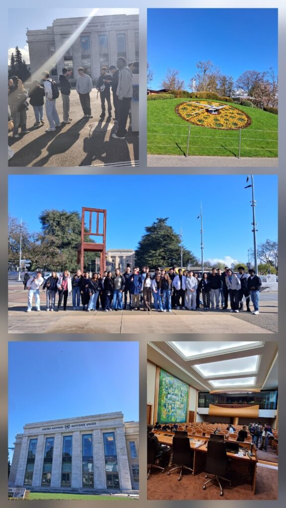 Le séjour s’est poursuivi le jeudi 12 mars avec une visite de Genève et de l’ONU. Divisés en deux groupes, les étudiants ont découvert les salles du Conseil et des Assemblées, lieux emblématiques où les représentants des nations débattent des grands enjeux internationaux.