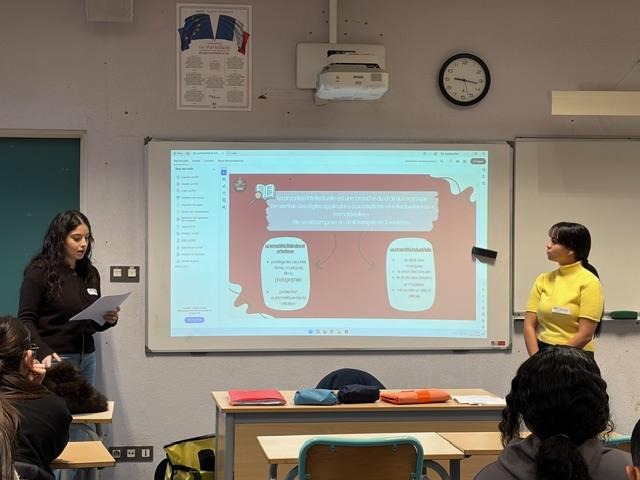 La propriété intellectuelle sur les réseaux sociaux a été un autre point phare de l’intervention. Les étudiants ont découvert que publier une photo sur un réseau social signifie la céder à la plateforme. Dans ces conditions, un « même » réalisée à partir d’une photo publiée sur une « storie » publique n’est pas illégal en soi. À condition, bien sûr, de ne diffamer personne. La diffamation, un mot que nous pouvons utiliser sans en connaitre les contours juridiques comme le rappelle à juste titre nos intervenantes. Une diffamation est une allégation précise, publique, qui porte atteinte à l’honneur.