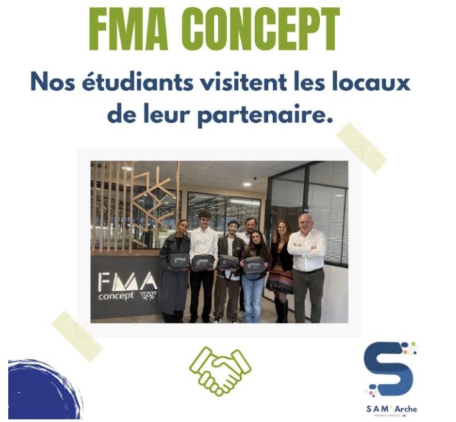 Par ailleurs, SAM’Arche a accompagné FMA Concept dans la préparation de salons professionnels, notamment à travers le choix et la commande de goodies. Ces objets promotionnels, utiles et représentatifs de l’entreprise, ont permis de valoriser sa présence lors des événements et de créer un lien avec les visiteurs. Cette mission a offert une expérience concrète autour de la sélection de produits adaptés, de la gestion du budget, des délais et de l’organisation logistique, tout en participant à la stratégie de communication de l’entreprise. Nos étudiants ont même eu la chance d’être accueillis pour une visite de cette entreprise.